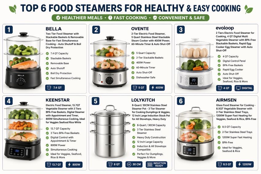 Our Top Pick: BELLA Two-Tier Food Steamer for fast, family-sized meals.